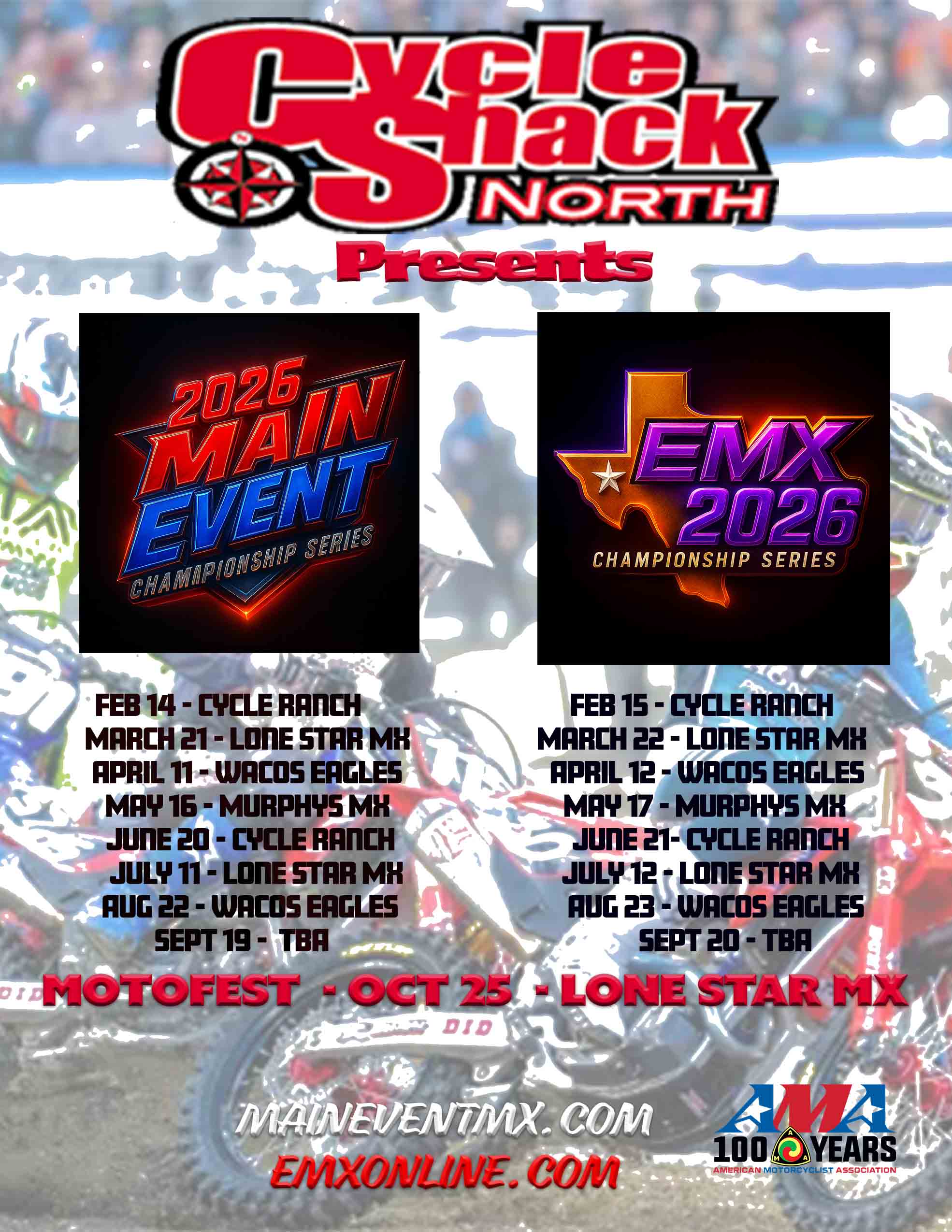 October 25, 2026 MOTOFEST ( separate event ) and Awards ceremony for overall series awards for EMX at intermission – Lone Star Mx